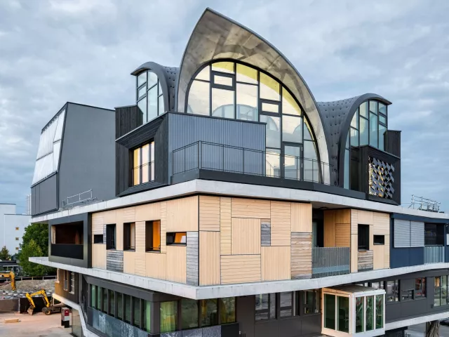 Prosklené fasády poskytují obyvatelům budov přímý přístup k přirozenému dennímu světlu a výhled do okolí.