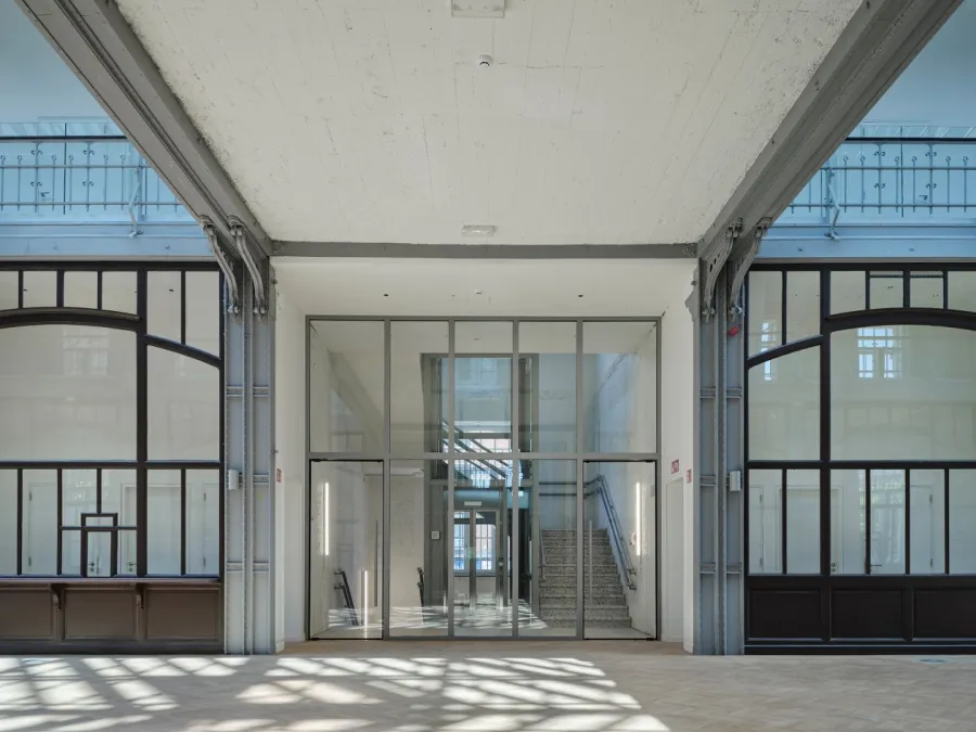 Die installierten Lösungen verbessern die räumliche Harmonie und schaffen eine visuelle Verbindung zwischen alten und neuen Elementen. Die Vertikalität der ursprünglichen Metallkonstruktionen findet sich in den modernen Edelstahlsystemen wieder, während speziell angefertigte Aluminiumprofile in individuellen Farben für visuelle Stimmigkeit mit dem Erbe des Gebäudes aus dem frühen 20. Jahrhundert sorgen.