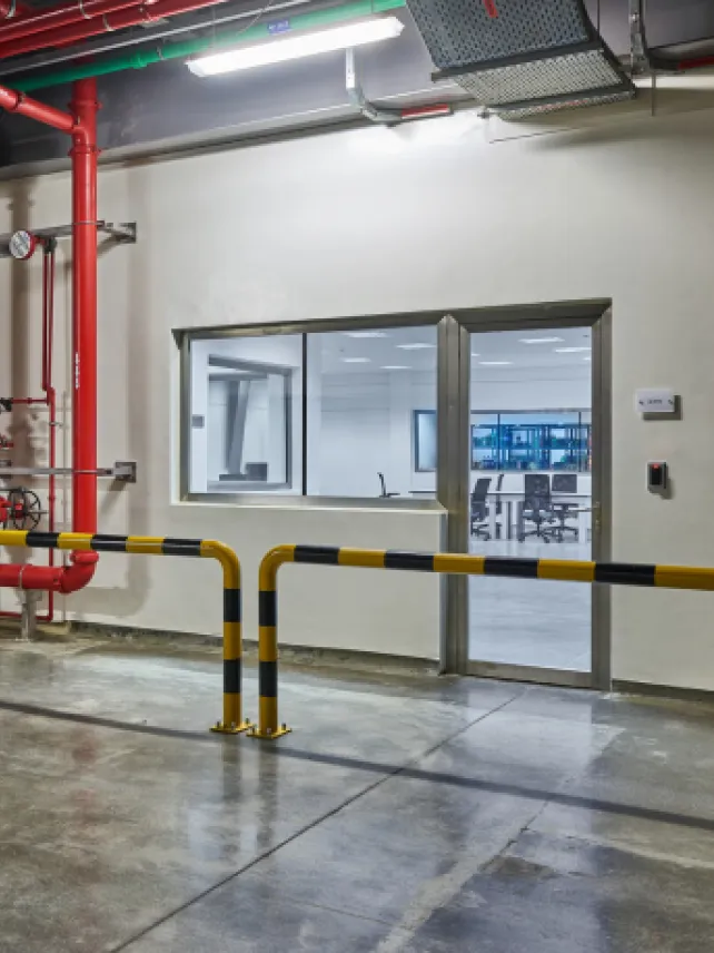 In zones such as control rooms and production areas, fire‑rated glazing can support visibility and supervision while maintaining required fire performance.