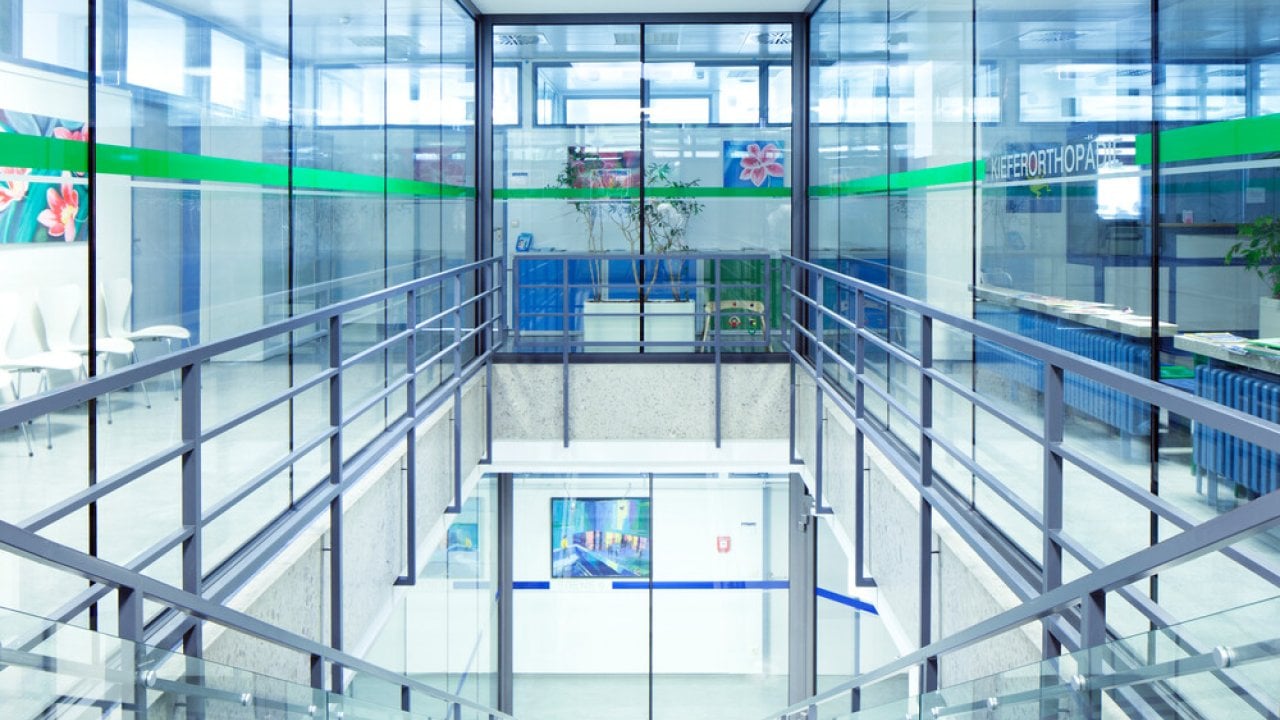 In hospitals, glass plays a vital role in creating a healing environment. Glazed areas bring in natural light, boosting staff performance and patient well-being. Its non-porous surface ensures easy cleaning and superior hygiene, while views of nature and daylight help reduce stress and support faster recovery. When paired with specialized coatings or laminates, glass also provides effective acoustic control and privacy, meeting both functional and comfort needs in healthcare spaces.
