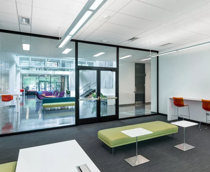 CONTRAFLAM Structure sets new standards in the design of transparent fire protection. The floor-to-ceiling glazing system provides a continuous, uninterrupted glass wall, joined only with silicone. Made of CONTRAFLAM fire-resistant glass, CONTRAFLAM Structure is engineered to achieve the mechanical resistance required to support interior wall line-loads and offer superior edge aesthetic.