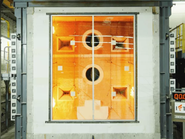Accredited fire testing laboratory ensures accurate fire testing, compliance to standards, precision and reliability in fire resistance assessments.