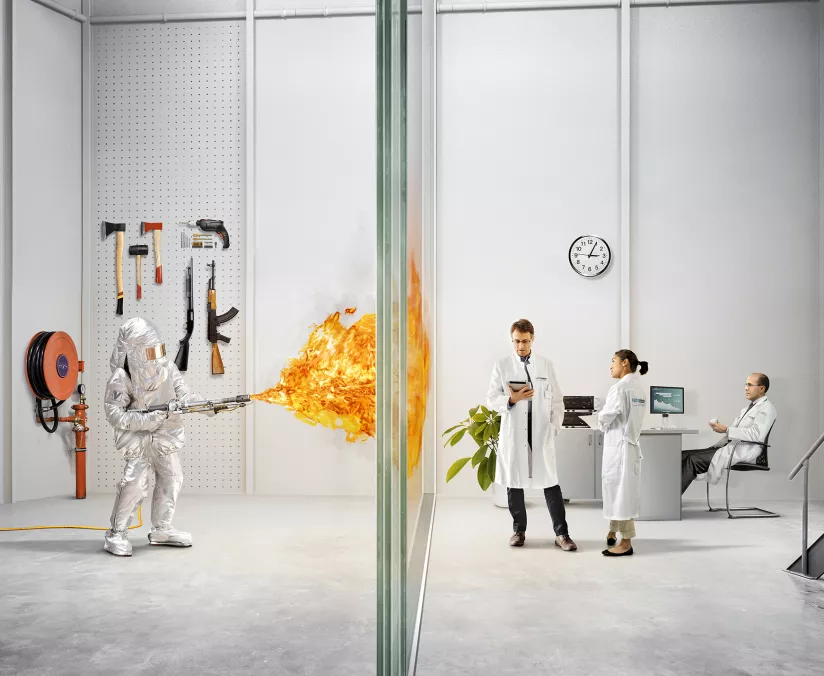 Los fundadores de Vetrotech, descendientes de la familia Giesbrecht, apostaron por una alternativa más segura - y más atractiva - al vidrio armado en la cuestión de la protección frente al fuego. Vetrotech se estableció en Walchwil, Suiza, con el objetivo de desarrollar el primer "vidrio de seguridad transparente resistente al fuego", denominado PYROSWISS. Este nuevo vidrio combinaba, por primera vez, la resistencia al fuego con las prestaciones de seguridad frente a impactos, allanando el camino para una nueva era en las soluciones en vidrio en la protección frente al fuego.