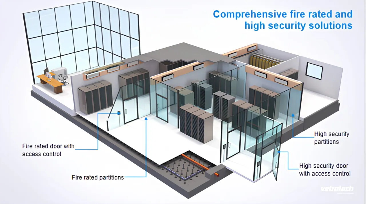 Au-delà du vitrage résistant au feu, une stratégie de protection incendie efficace des data centers repose sur plusieurs éléments essentiels.